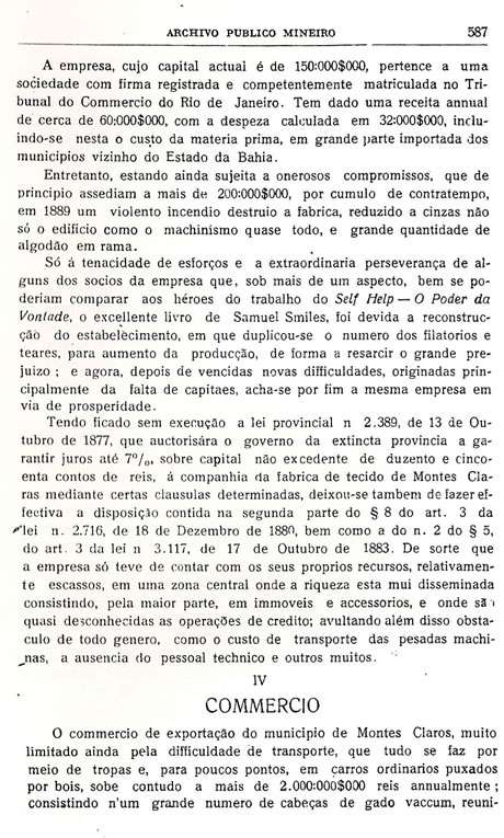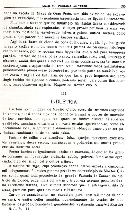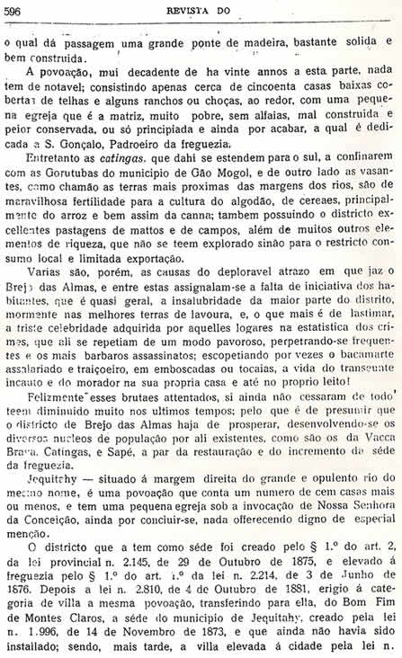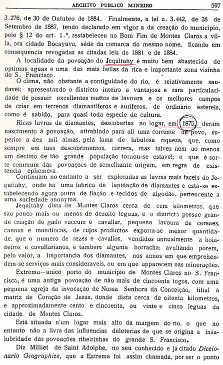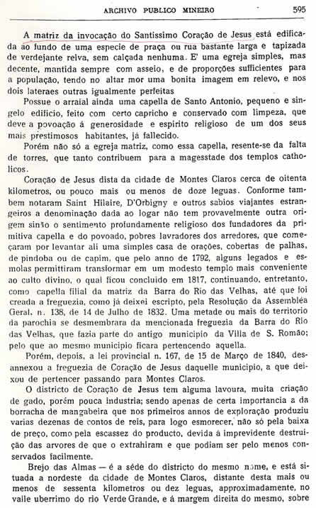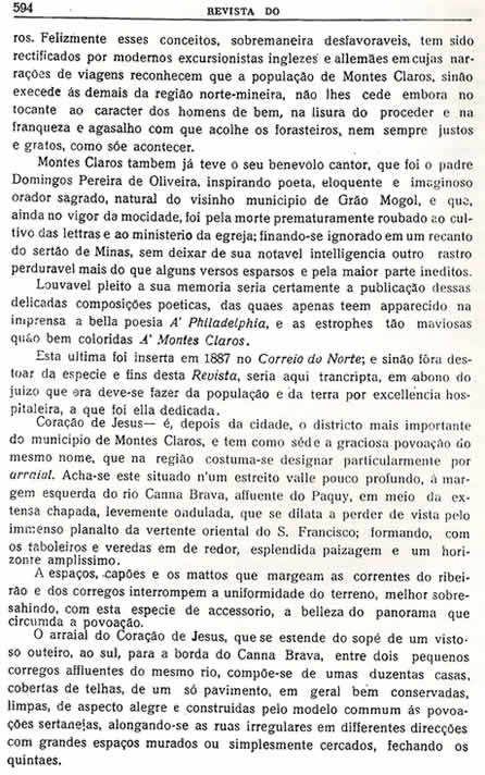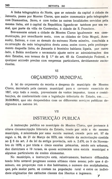Transcrição da Revista do Archivo Público Mineiro, editada em Ouro Preto, então capital de Minas, em 1897. O conteúdo, doze anos antes, em 1885, saiu no primeiro jornal de Montes Claros, “Correio do Norte”, fundado e editado pelo autor – o depois desembargador Antônio Augusto Veloso, pai da imprensa de Montes Claros. É o mais antigo documento sobre a história de Montes Claros - Parte 35 - (As partes anteriores estão arquivadas na seção Colunistas - Web - Chorografia)