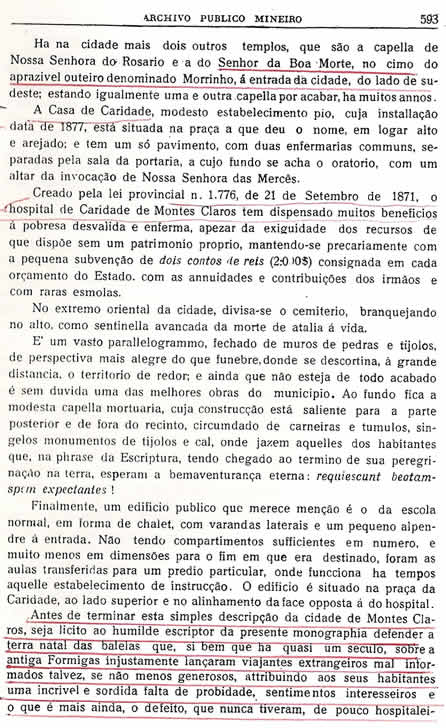 Recebeu o nome de "Chorographia Mineira - O Município de Montes Claros".